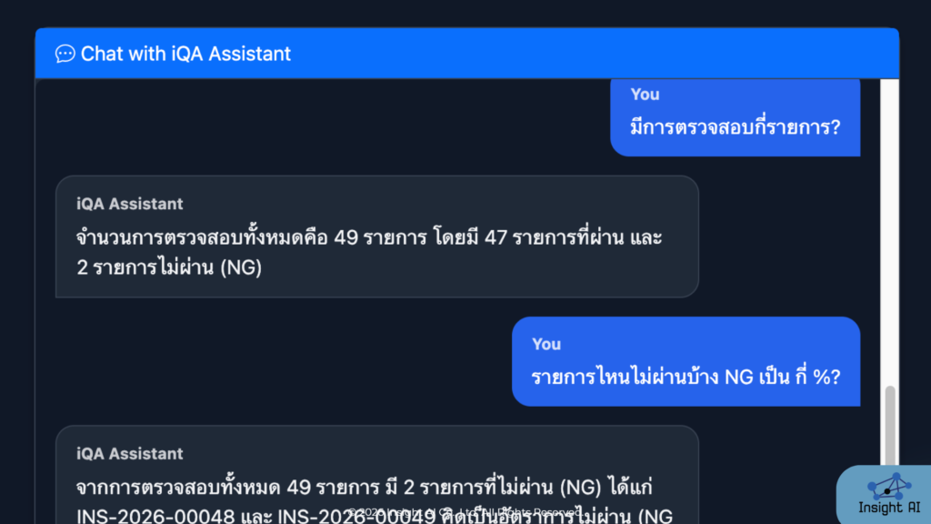 ผู้ช่วย AI สำหรับงานคุณภาพและการผลิต เชื่อมต่อกับ iQA โดยตรง