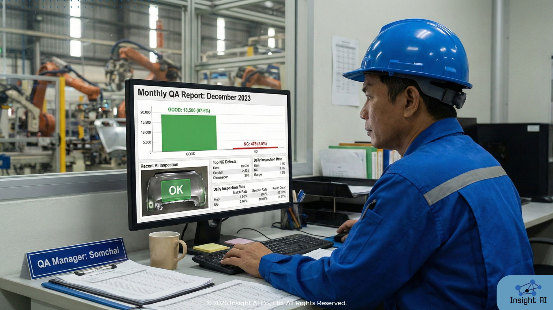 AI ช่วยลดเวลาในการค้นหาข้อมูลและสรุปสถิติต่าง ๆ โดยที่ผู้ใช้ไม่ต้องค้นหาเองด้วยมือ สามารถถามเจาะลึกรายละเอียดได้ทันที เช่น ประเภทของตำหนิที่พบบ่อย (Defect Type) หรือพนักงานที่เกิดข้อผิดพลาดบ่อย เพื่อนำไปใช้ปรับปรุงกระบวนการผลิตได้อย่างรวดเร็ว